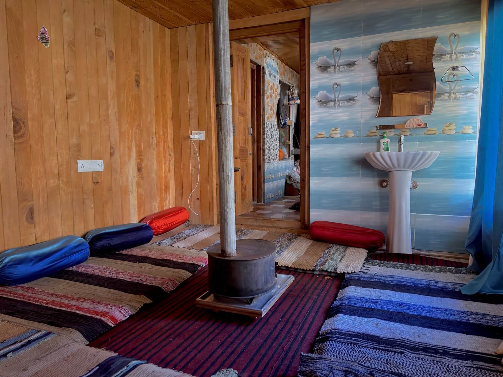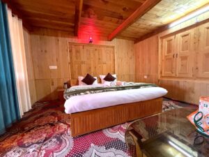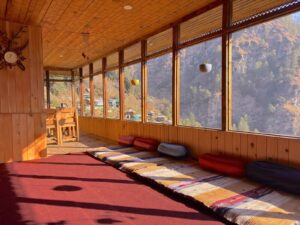 Khushmita Boutique Homestay is one of the best homestays in Himachal. It is situated in Laida village, Banjar. Inspired by traditional Himachali (Kath-Kuni-inspired) rural architecture, the homestay stands as a beautiful structure. It is surrounded by a huge apple orchard. There are various other fruit trees, which include pear, plum, and apricot. You can enjoy long, peaceful walks through the orchard, home to over 1,000 fruit-bearing trees, and even experience fruit picking during the harvest season.